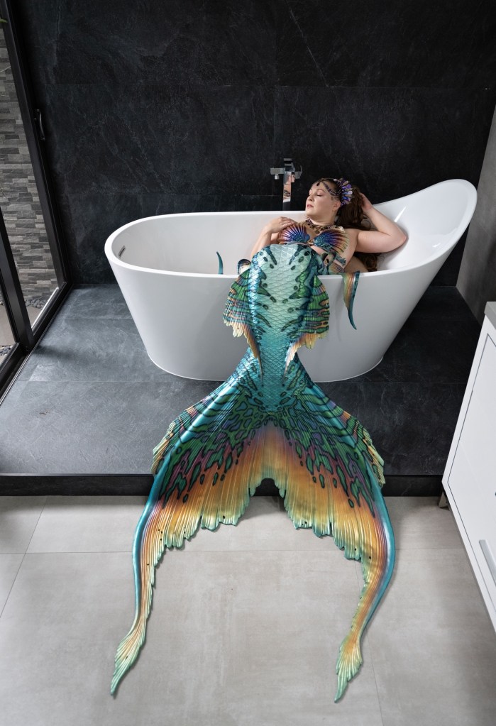 Authentic mermaid with experience swimming, performing, and interacting underwater in tanks and aquariums.